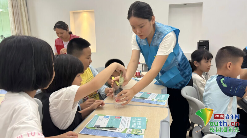 在滨海新村社区空地上,一群居民围在塑料桶、砂石、椰壳活性炭等材料前,专注地观看实践队员演示简易净水装置的制作过程。一位队员将浑浊的污水缓缓倒入自制滤水器,经过层层过滤,清水逐渐流出。“真神奇!这么简单就能把污水变清?”村民边看边感叹。除了在空地演示,队员还紧密与社区孩子们的联系,手把手指导孩子们制作简易净水装置。在队员帮助下,孩子们成功将一杯杯浑浊的泥沙水净化成可回用的清洁水。“以前污水都是直接倒掉,现在才知道这些都是‘放错地方的资源’。”