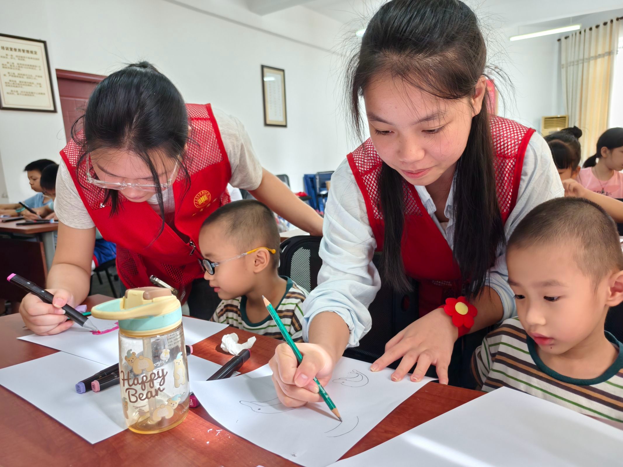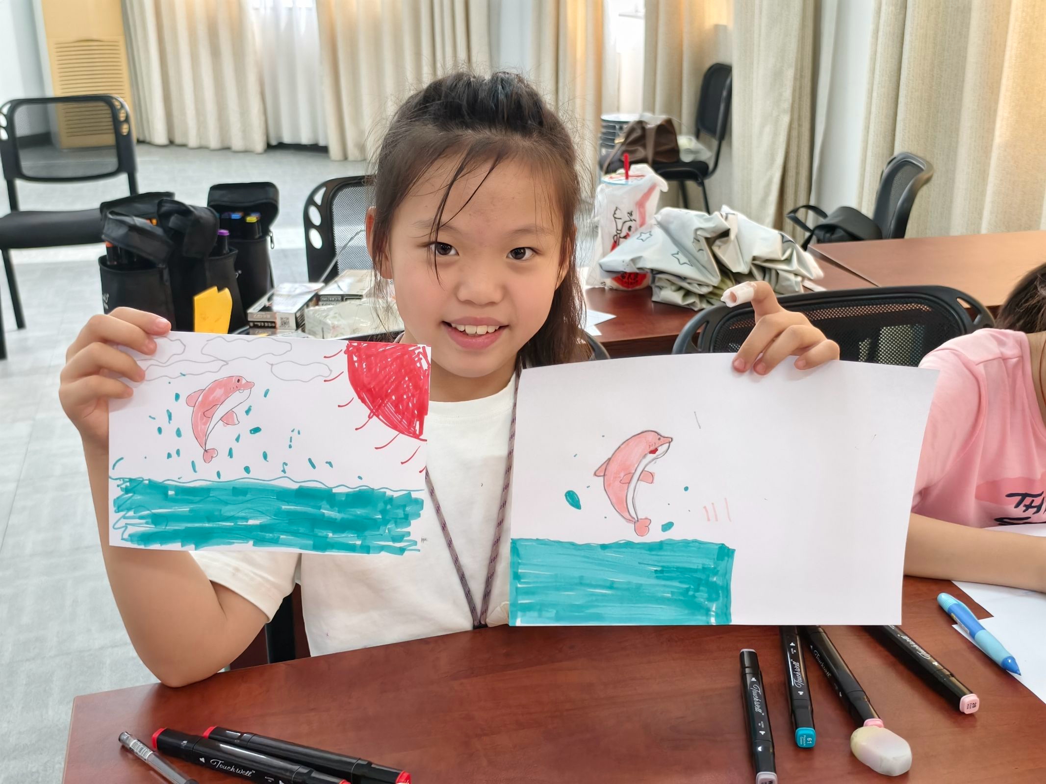 北部湾大学教育学院组建的“钦承文脉·童心同行”社会实践团于7月13日赴广西壮族自治区钦州市钦北区石油社区及钦南区滨海江语湖幼儿园开展为期七天的“钦承文脉·童心同行”暑期三下乡社会实践活动。本次活动紧扣儿童视角,把宏大的文化主题转化为童趣可感的具象体验,让孩子们通过白海豚创意绘画领略滨海海洋文化的多彩;在书法练习中用心感悟传统文化的底蕴。(通讯员 杨李睿)