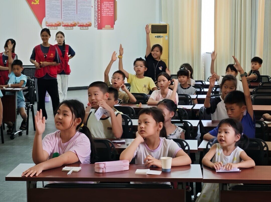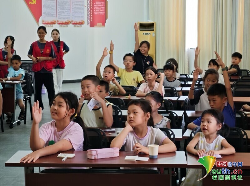 图为社区小学生在“手作传薪火,红心塑民魂”民族主题课堂上积极举手回答问题。闫雪欣 供图
