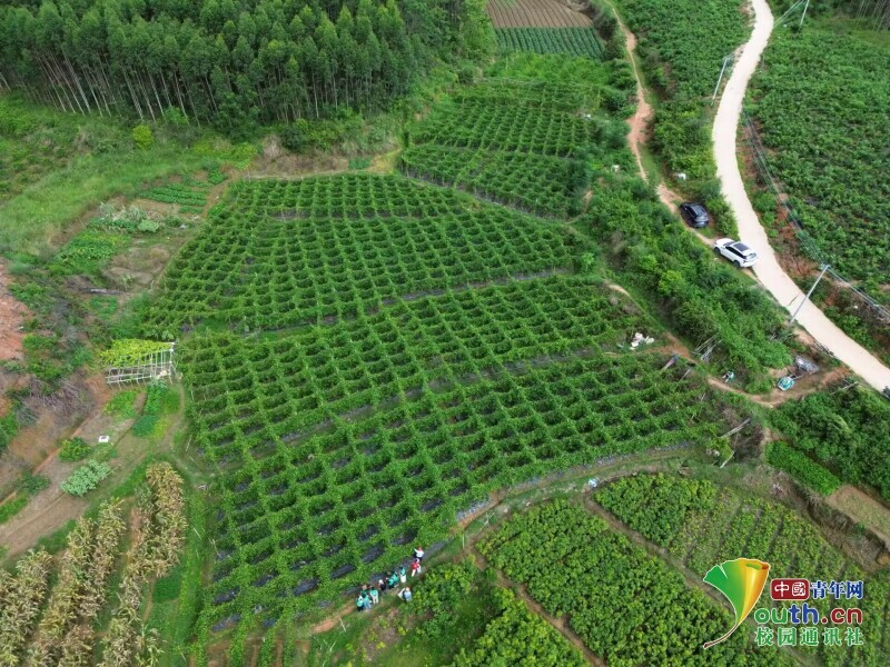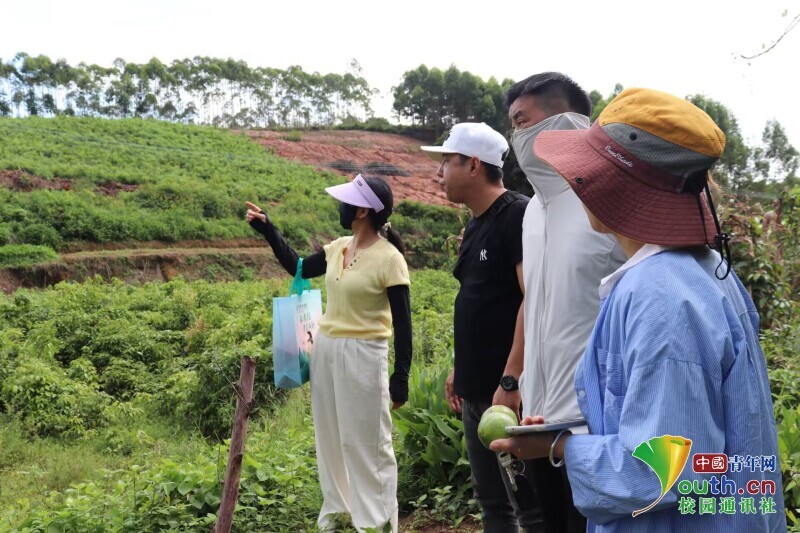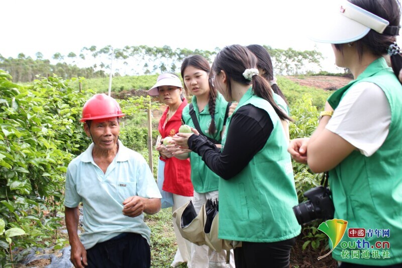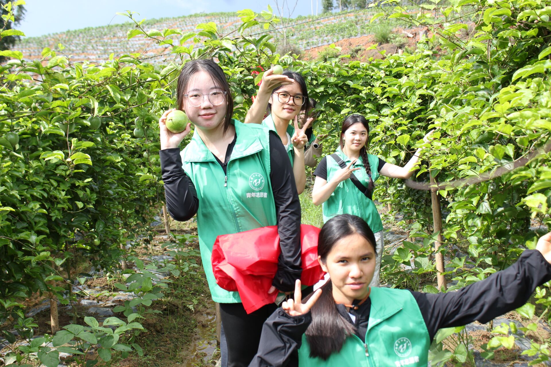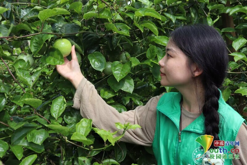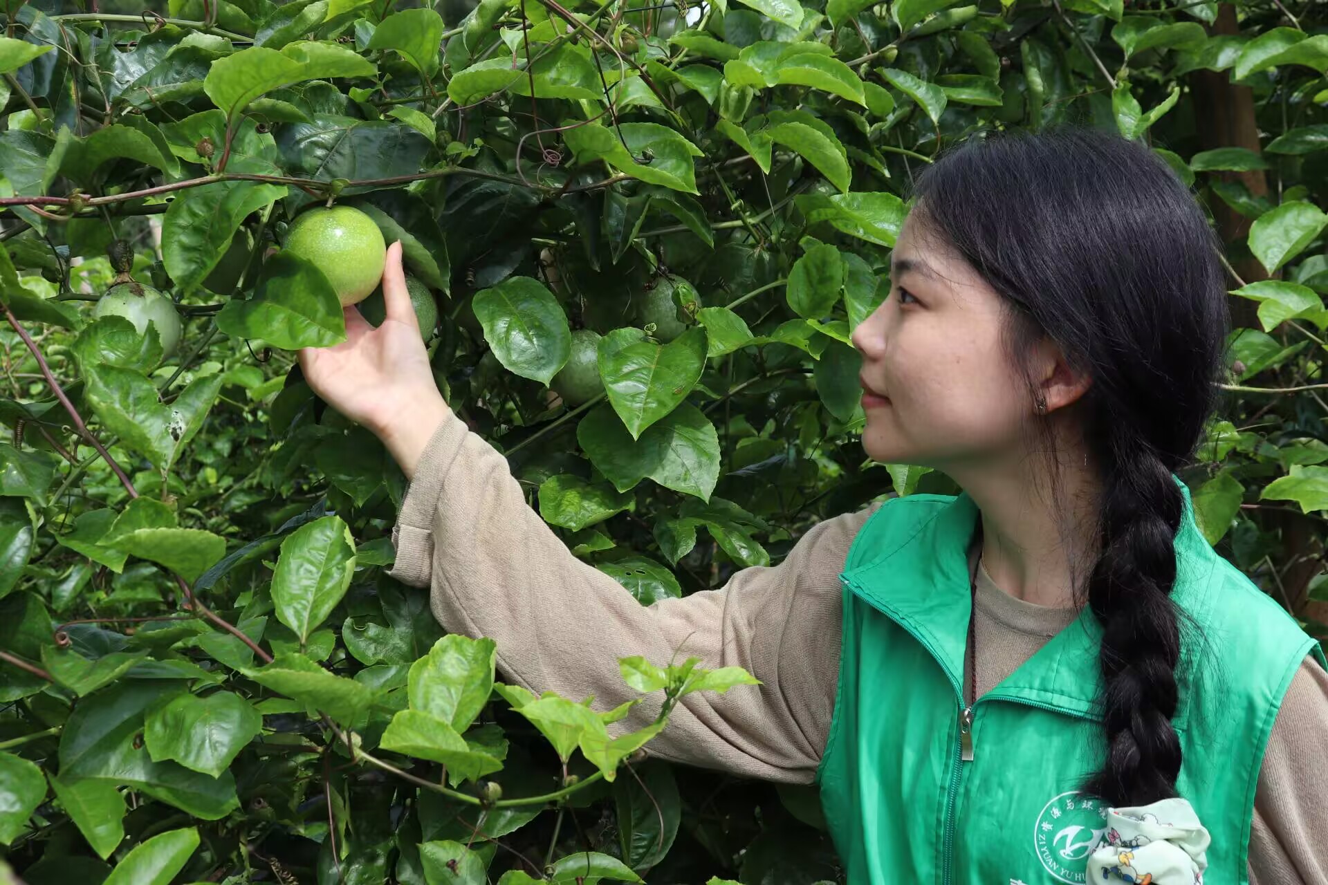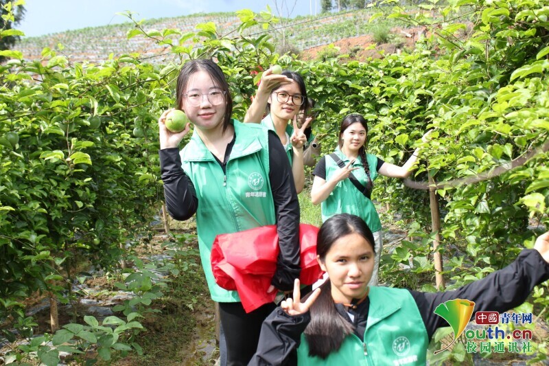 图为实践团成员在田间帮助果农采摘百香果。凌叶婷 供图