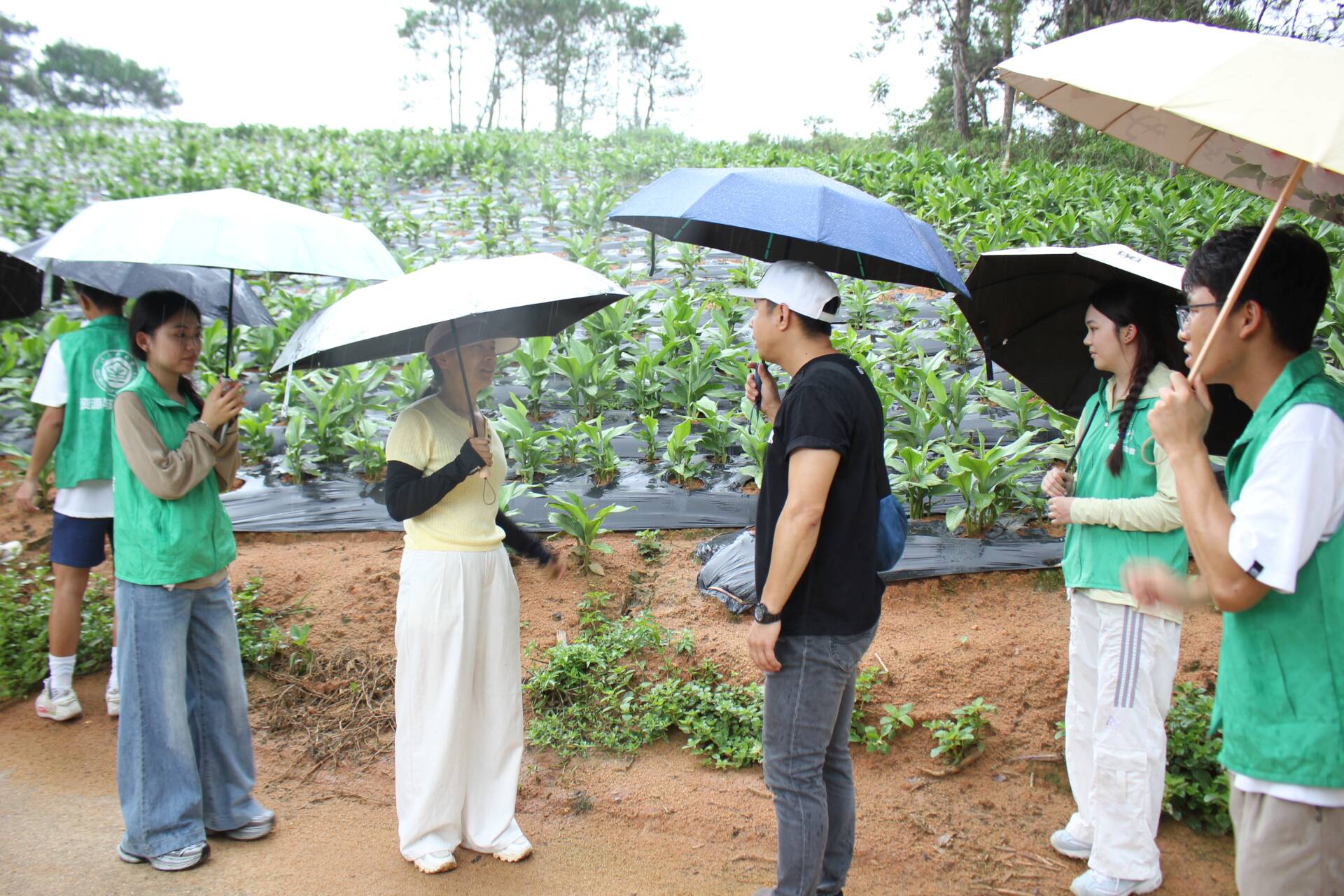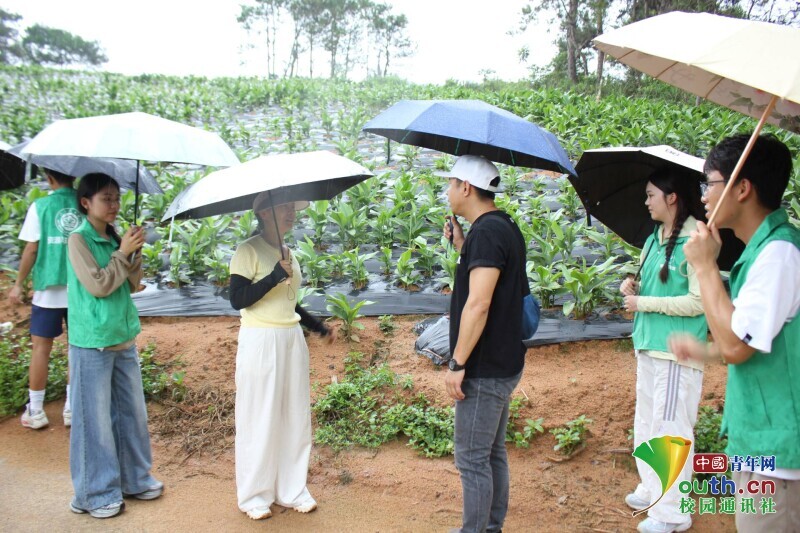 图为新禾村村书记向实践团成员介绍五指毛桃。宋慈慈 供图