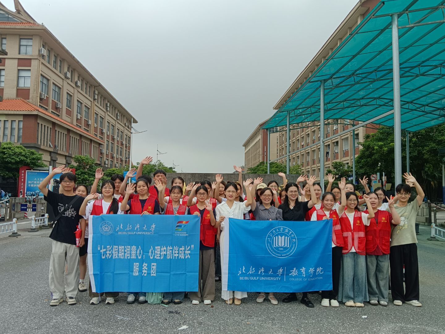 北部湾大学教育学院组建“七彩假期润童心,心理护航伴成长”服务团于7月13日分赴广西壮族自治区钦州市江语湖幼儿园以及钦州市钦北区永福东大街6号石油小区开展为期七天的“七彩假期润童心,心理护航伴成长”暑期三下乡社会实践活动。本次活动双轨并进,以幼儿园及社区为教育主阵地,为不同年龄段青少年儿童开展丰富多彩的教学与心理辅导活动,助力健康成长;以实践平台培育担当,为大学生志愿者提供深入基层教育一线的机会,培养社会责任感、团队协作意识和志愿服务精神。此次活动通过教育服务纽带串联成长关爱,以双向赋能行动促进儿童健康发展与志愿者能力提升。(通讯员 周梅)