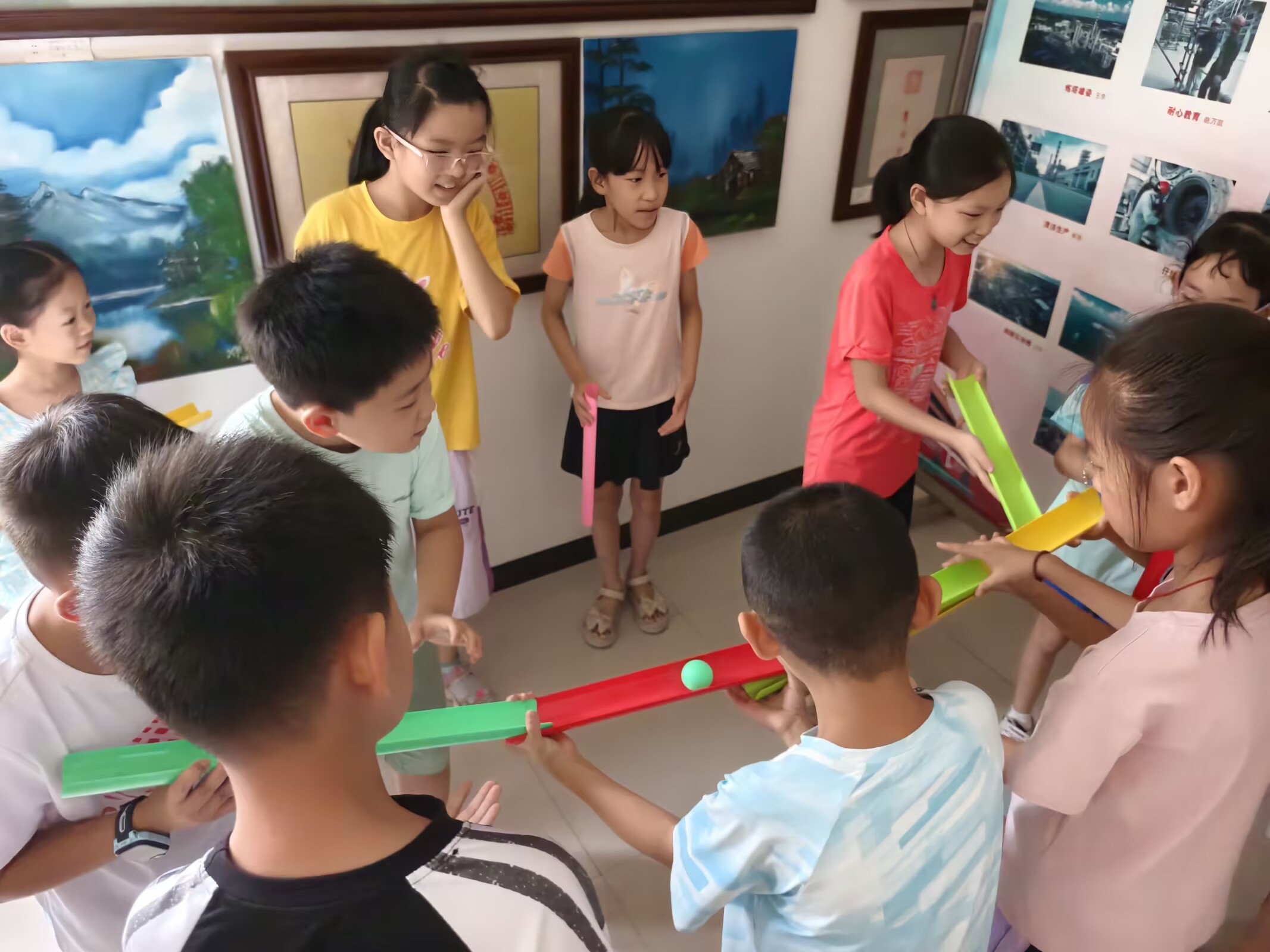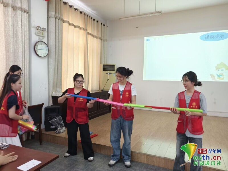 图为服务团志愿者示范“珠行万里”游戏过程。周梅 供图