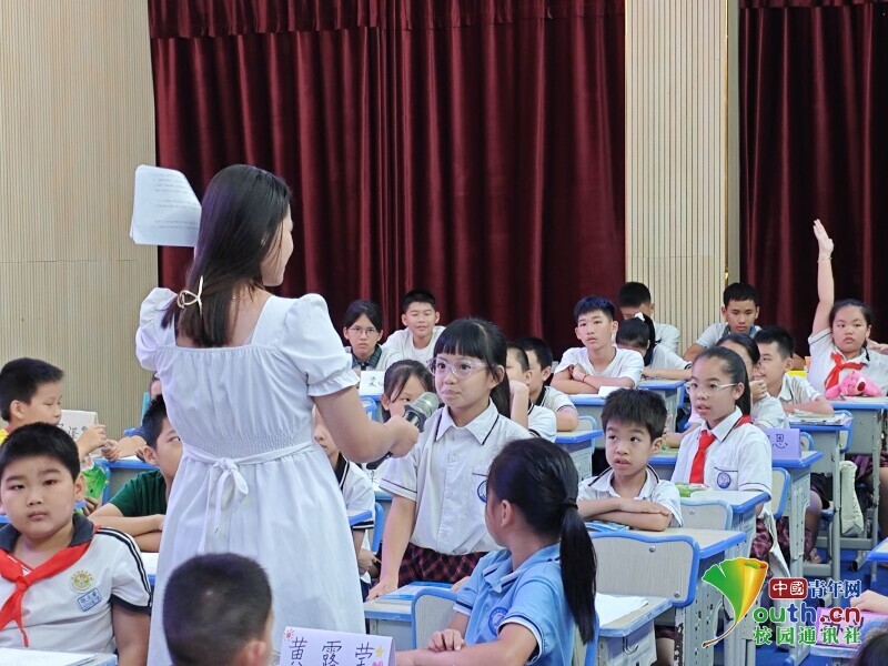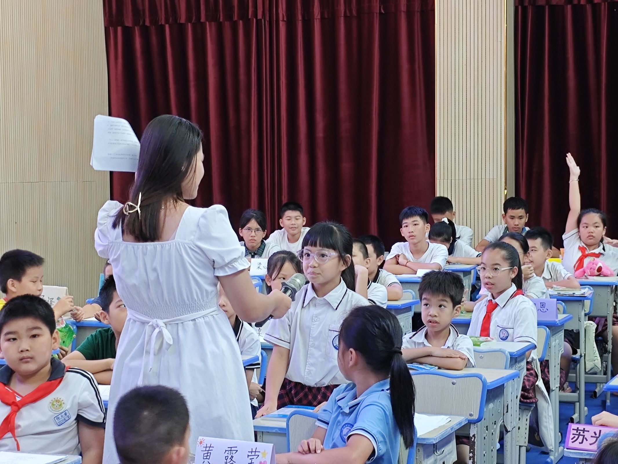 图为主持人阮小倩带领东兴市实验小学学生开展破冰小游戏。林玉莹 供图