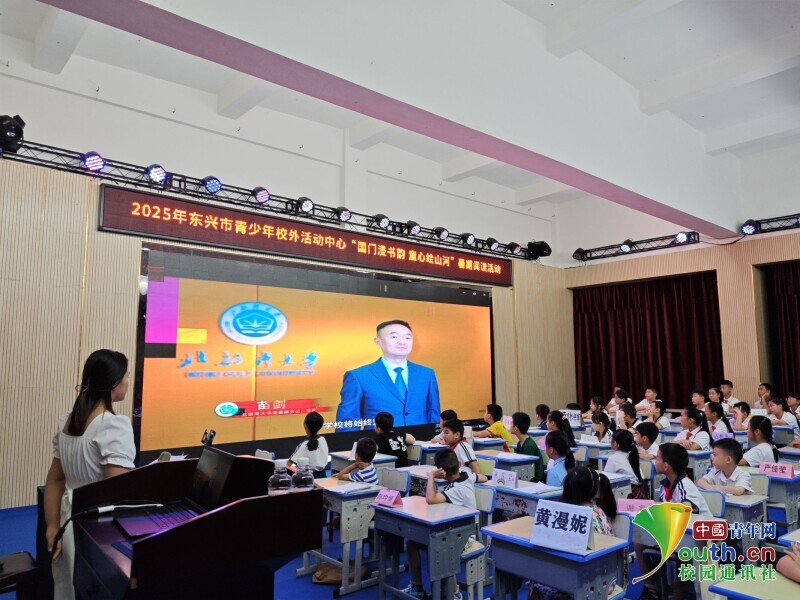 图为东兴市实验小学党支部副书记朱雄伟为本次阅读推广活动做总结。林玉莹供图