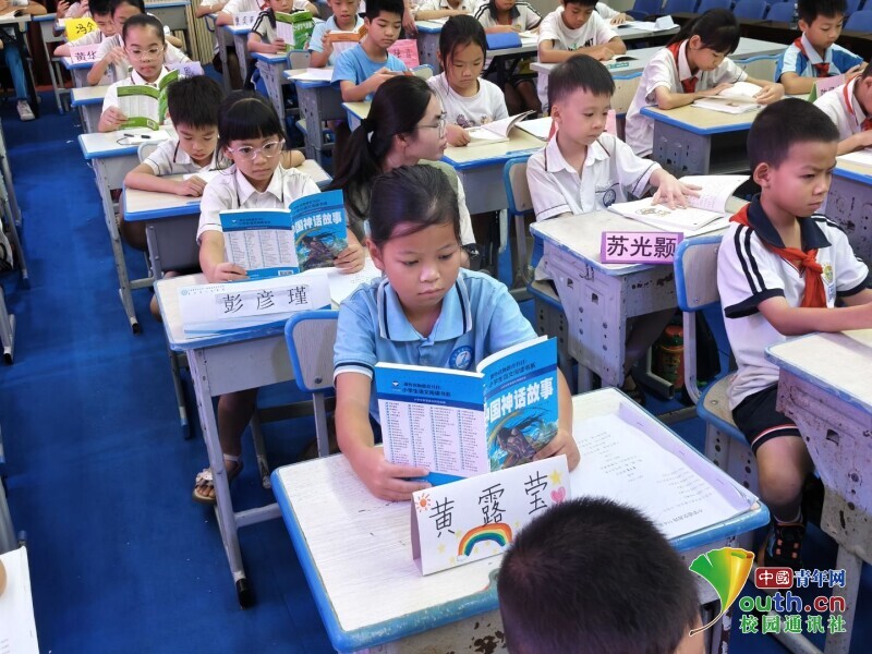 图为东兴市实验小学的孩子们专注阅读《中国神话故事》绘本。林玉莹供图