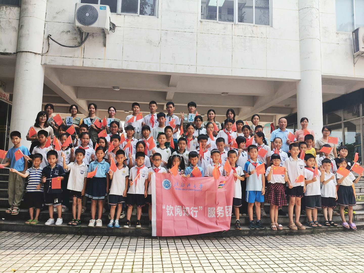 图为北部湾大学“钦阅知行”志愿队和东兴青少年宫儿童大合照。林玉莹 供图
