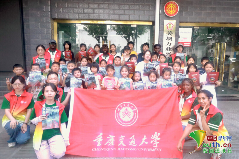 重庆交大中外学子与社区儿童交流合影 刘入溢 供图