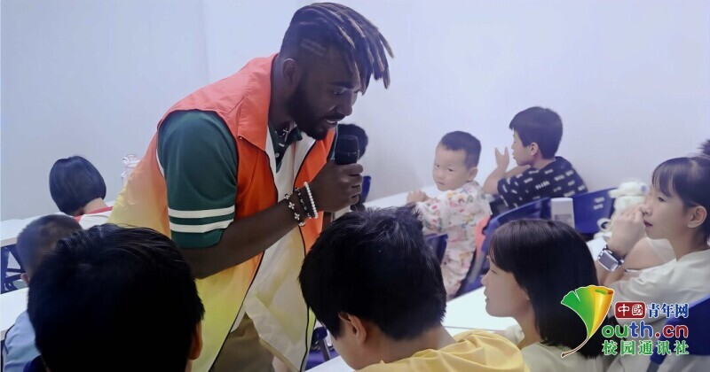 实践团留学生志愿者用外语与儿童对话 郑佳欣 供图