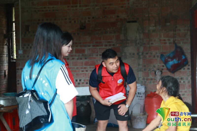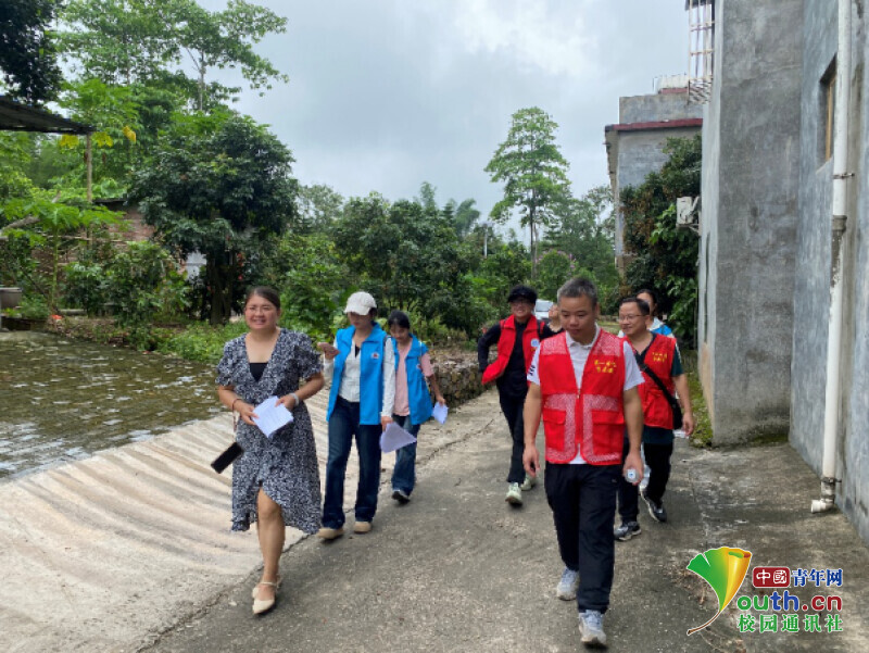 图为村委同志带领实践队走访村民。刘议琳 供图