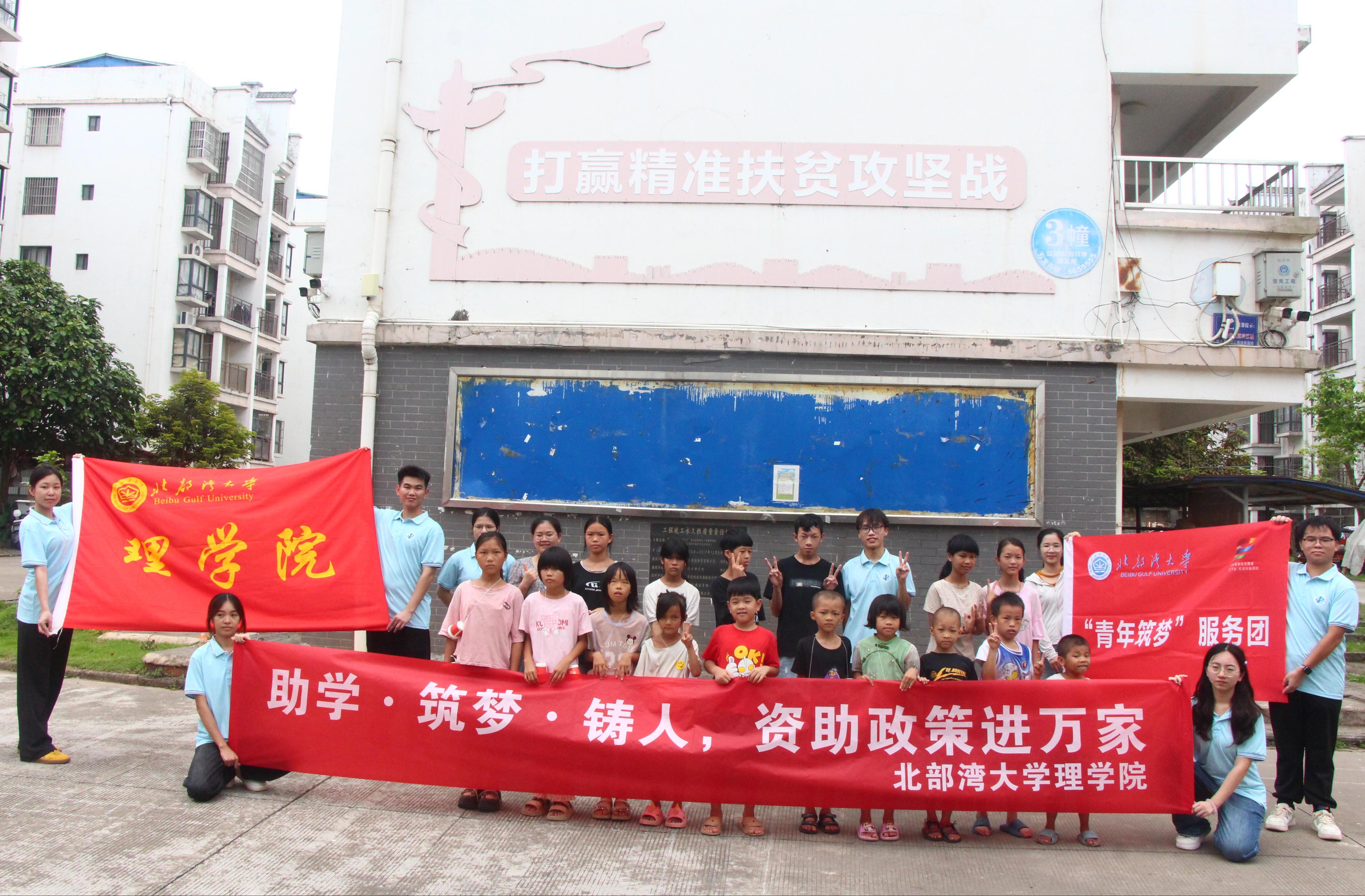 为引导青年学生在实践中服务社会、锻炼成长,北部湾大学理学院“青年筑梦”服务团于7月14日至16日,分别赴钦南区易地扶贫搬迁安置点、大沙垌社区开展暑期“三下乡”社会实践活动。本次活动以爱国教育和课业辅导为核心,融入趣味课堂、心理辅导等多元内容,为当地青少年带来了丰富的暑期体验。(通讯员 韦思茵)