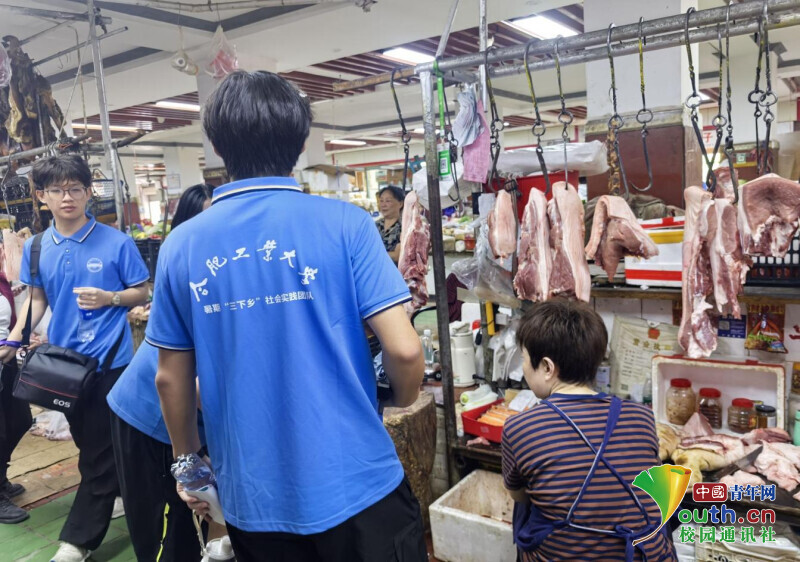图为团队成员在菜市场询问藏香猪的保存方法。王酉戈 供图