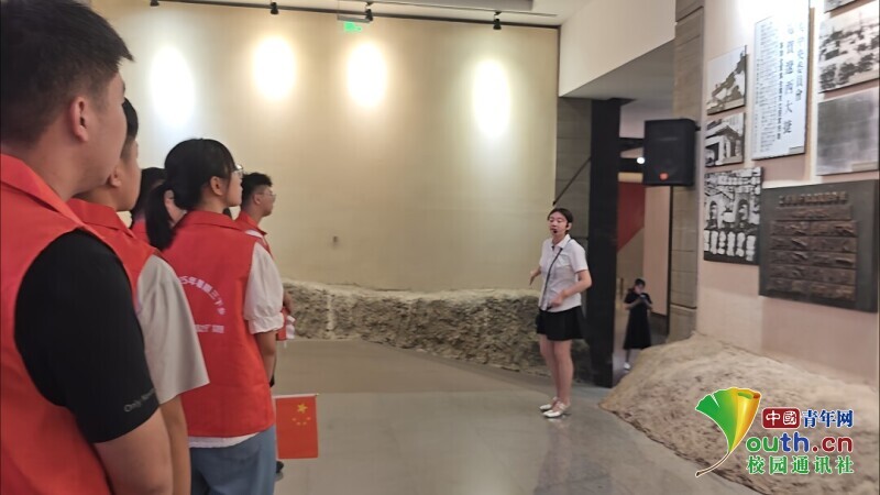 图为实践团在黑山阻击战纪念馆聆听讲解员讲述黑山阻击战历史背景。于翔 供图