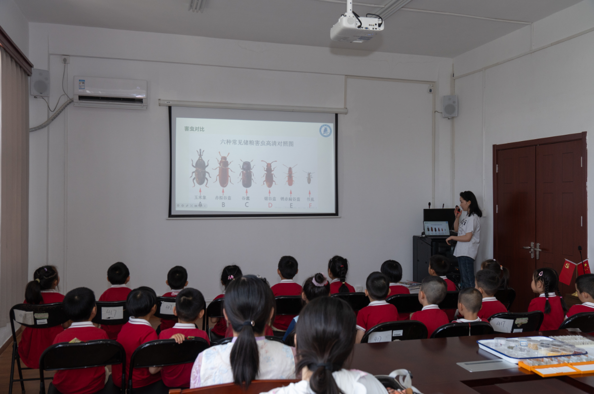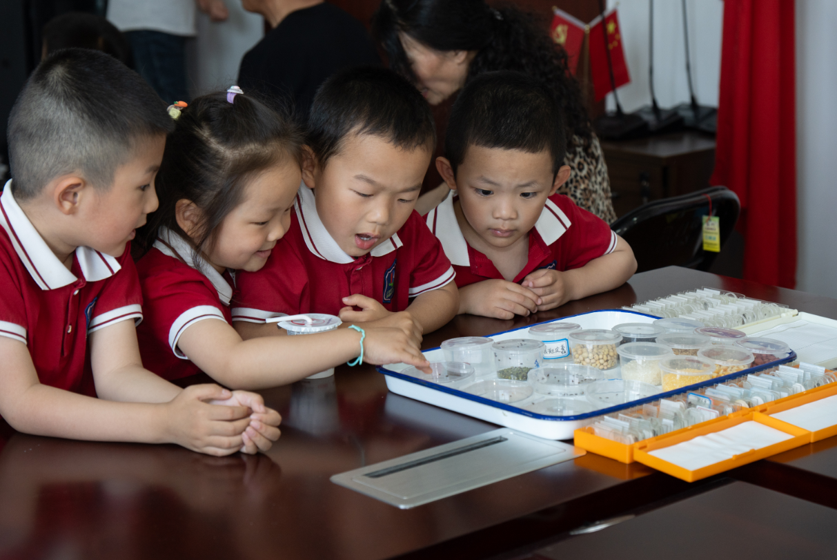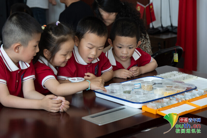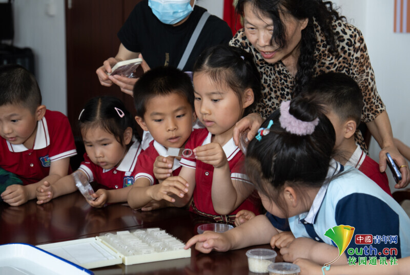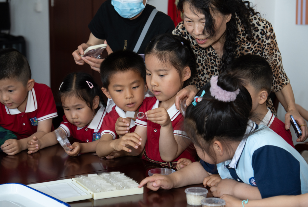 图为幼儿园小朋友在科技周观察谷物害虫。刘杨浚 供图