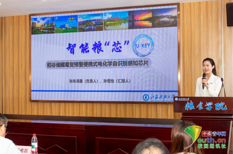 图为学生负责人展示“人工智能+粮食”科技成果路演。杨浩元 供图