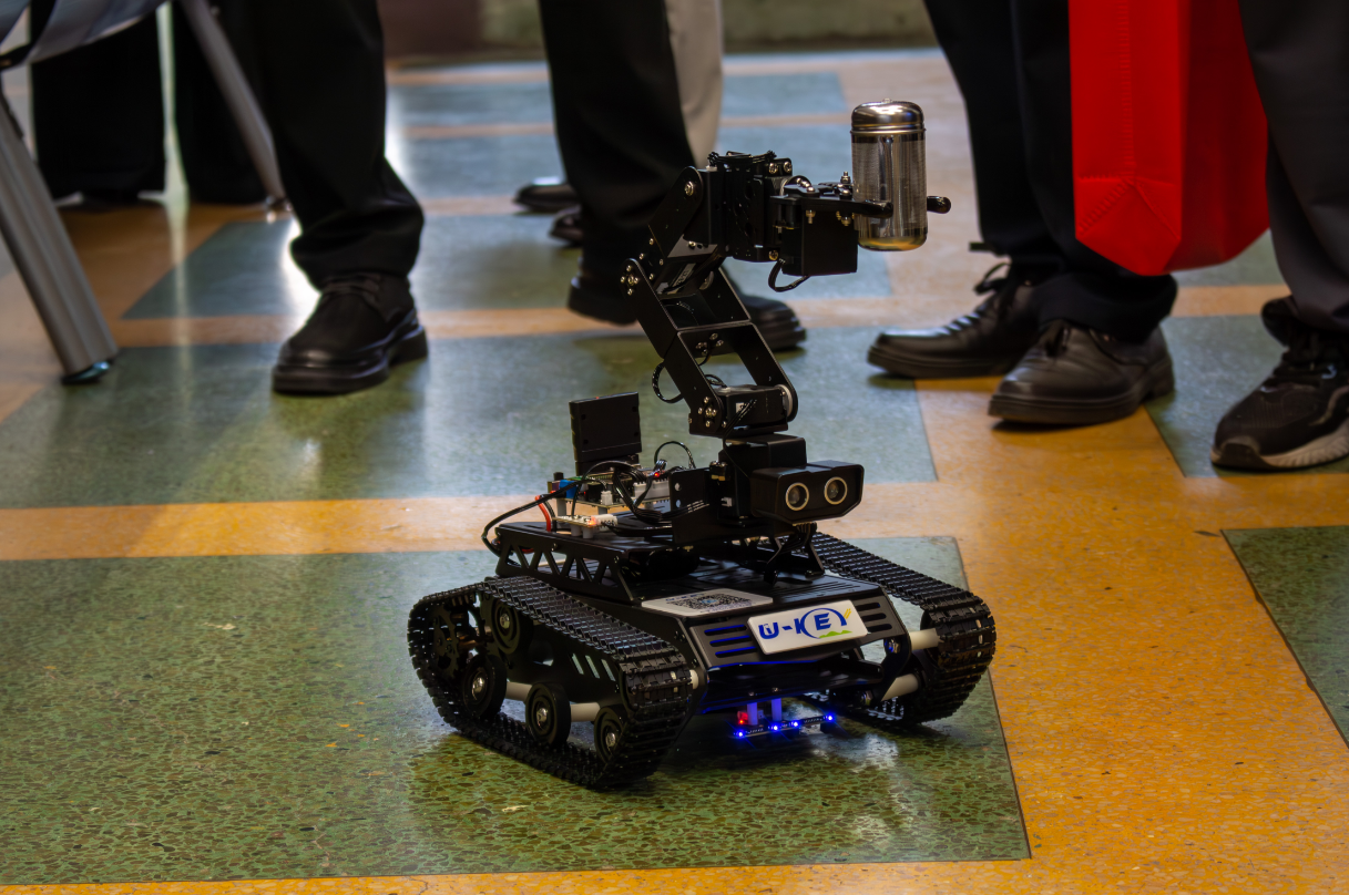 图为学院科技作品“U-KEY”机器人展示。刘杨浚 供图