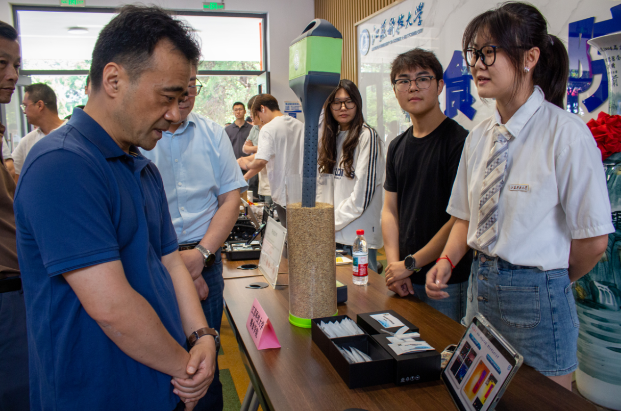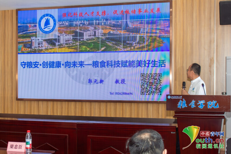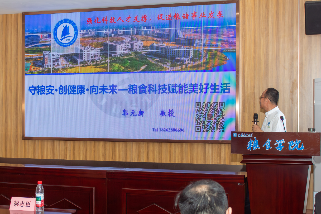 活动现场亮点纷呈,科技感与创新力十足。与会嘉宾首先沉浸于“粮安天下,科创未来”成果展区,全谷物3D打印食品、“U-KEY”机器人等前沿创新产品引人驻足,生动展现了健康科技与粮食安全的魅力。青年学子成为绝对主角——在科研平台巡游中,他们自主研发的苹果山楂汁等健康饮品获得现场品鉴好评;启动仪式上,学生项目负责人精彩路演“人工智能+粮食”科技成果,彰显智慧粮储的青春力量。活动还重磅启动了镇江市粮食行业职业技能大赛,并举行了“粮博士”工作站签约仪式,搭建起政校企深度合作、共育粮储科技人才的新桥梁。郭元新教授围绕“守粮安·创健康·向未来”的专题讲座,进一步点燃了现场科技创新的热情。(通讯员 武兆文 徐梦琦 杨浩元 刘杨浚)