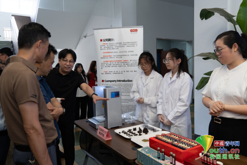 图为嘉宾现场品尝学生自主研发饮料。刘杨浚 供图