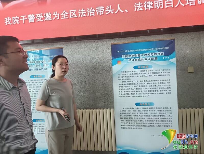 图为青岛市崂山区检察官刘迪介绍崂山区无障碍环境建设公益诉讼的典型案例。刘玙璠 供图