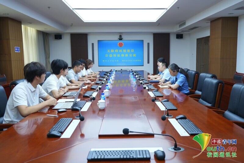 图为实践队成员与威海市高新区检察官交流威海市高新区、乳山市、文登区无障碍环境建设公益诉讼典型案例及相关情况。王玥月 供图