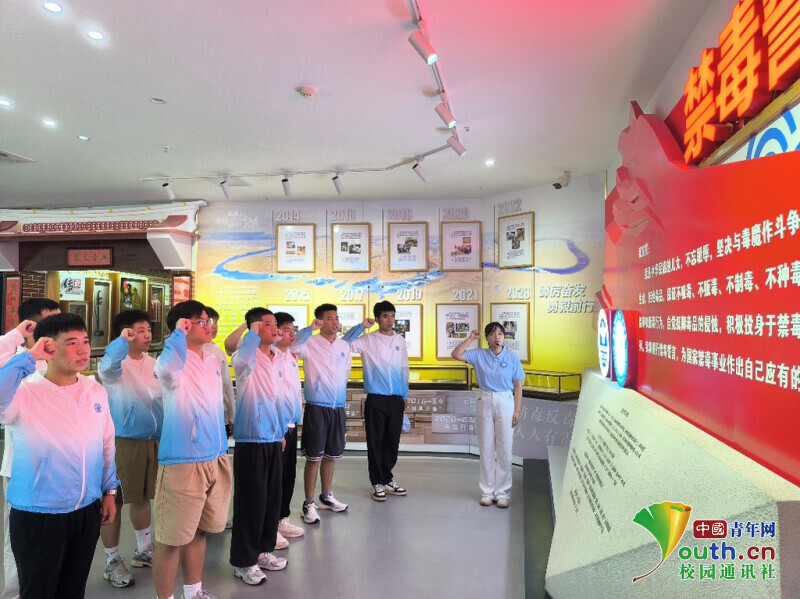 图为林则徐禁毒教育基地工作人员带领实践团成员进行禁毒宣誓。黄唐芬 供图