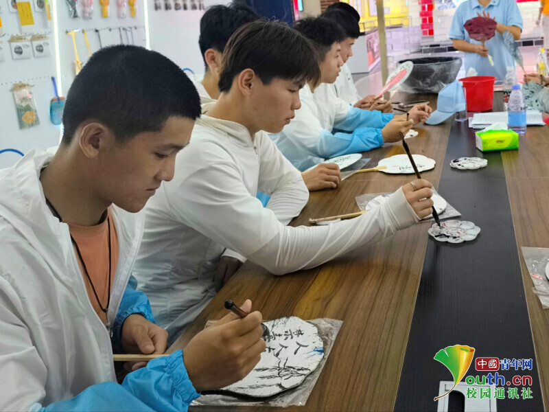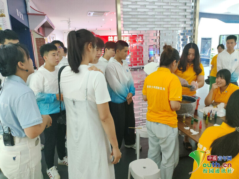 图为实践团成员学习制作禁毒漆扇。袁培桢 供图