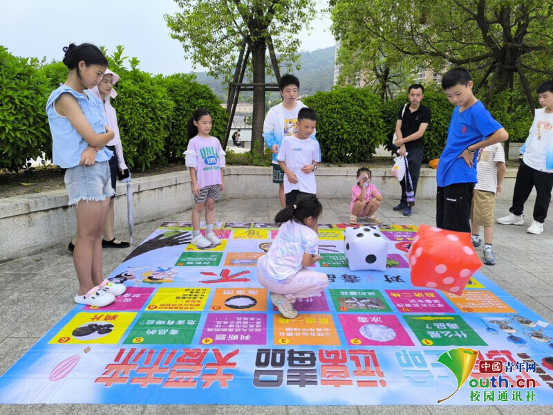图为实践团成员带领莆田市民玩禁毒飞行棋游戏。张舜宝 供图