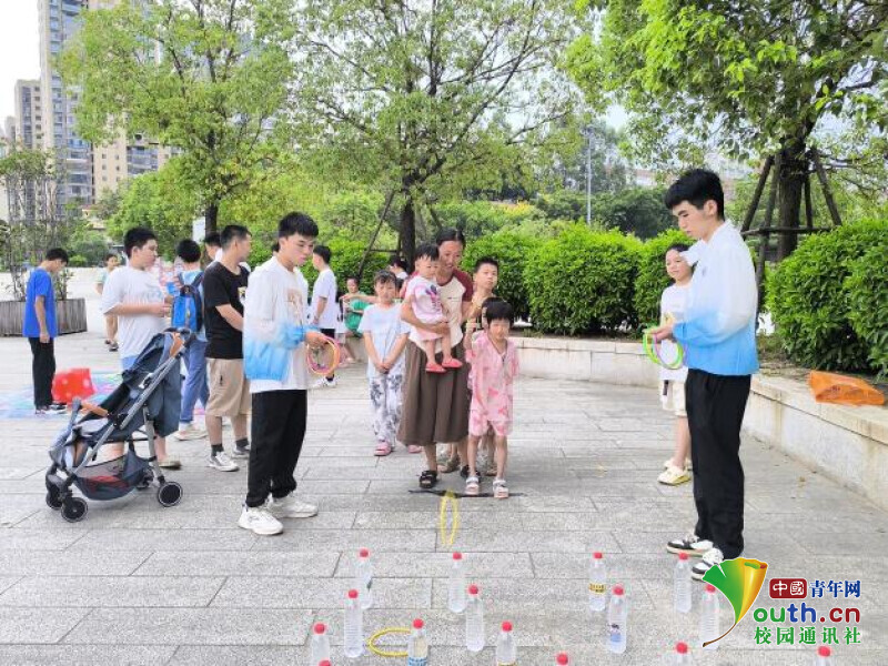 图为实践团成员带领市民玩反诈套圈游戏。杨浩胜 供图