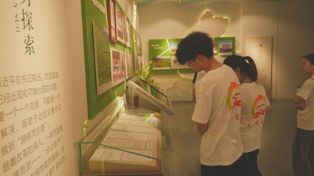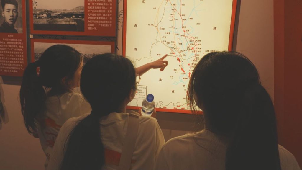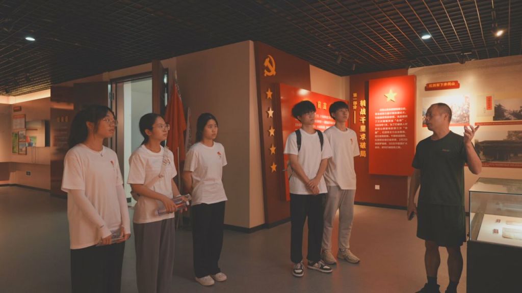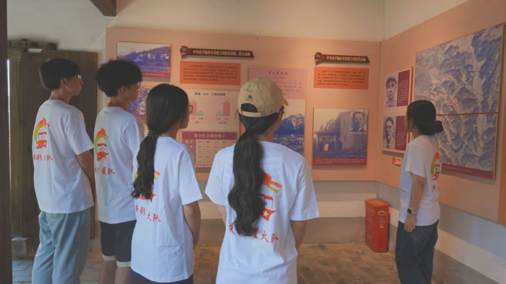 图为讲解员带领实践队参观红军近闽第一村展示厅,介绍了红四军首次进入福建的革命历程。陈诗欢 供图