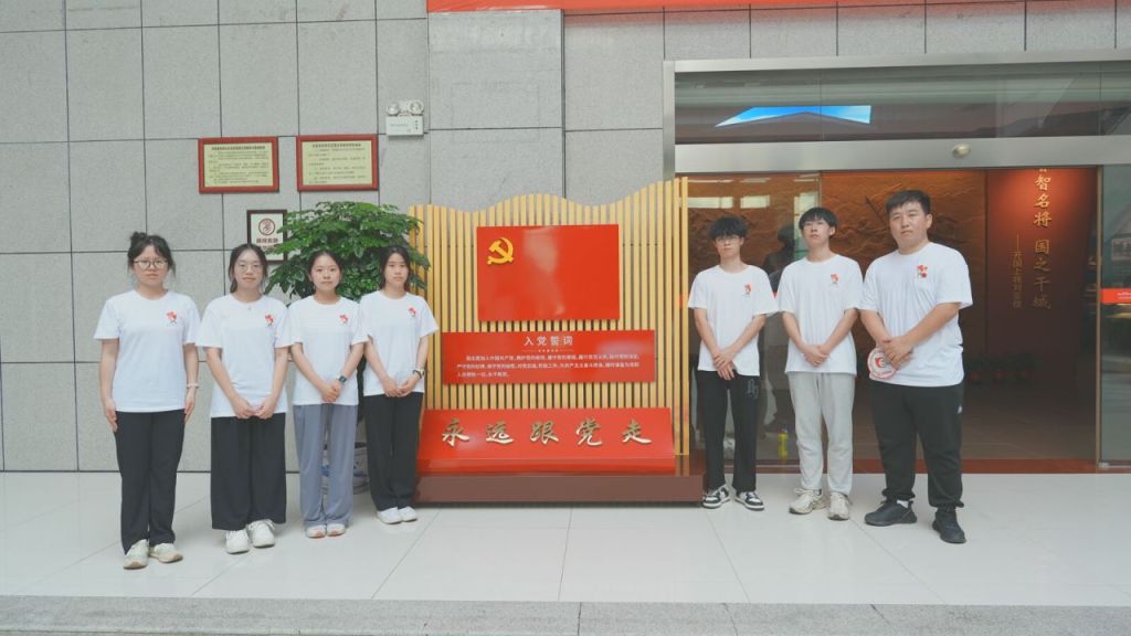 图为实践队重温入党誓词,在党旗前庄严合影。 陈诗欢 供图