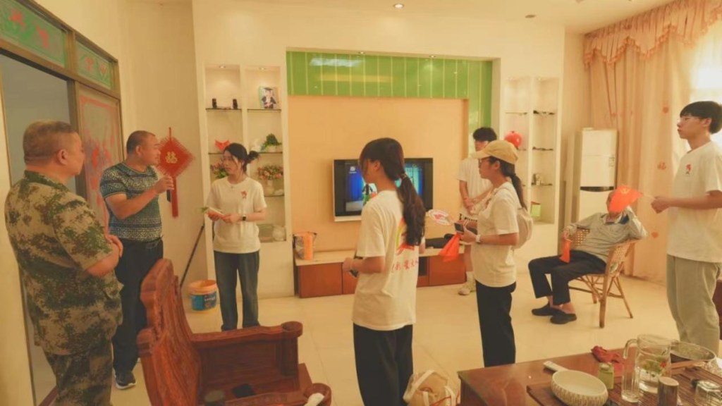 图为实践队队员转移到岩前镇跟随驻村干部的带领,走访慰问“五老”。陈诗欢 供图