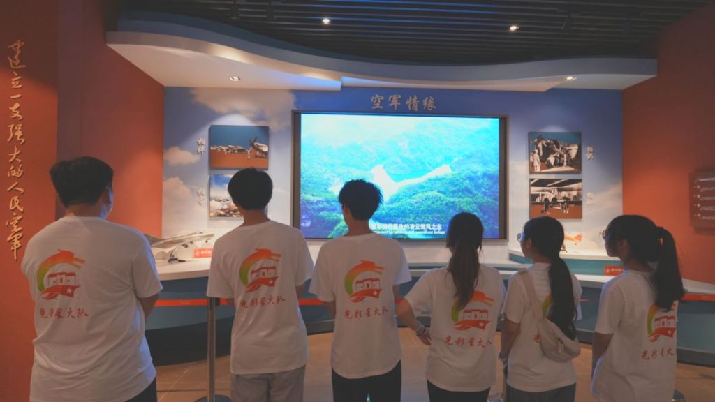 图为在文博园实践队通过多媒体宣传了解空军情缘的故事。 陈诗欢 供图