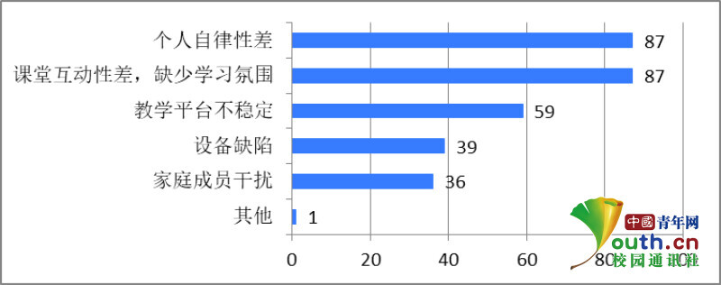 图为高校学子认为线上授课学习效率更低的原因。中国青年网通讯员 王睿 提供