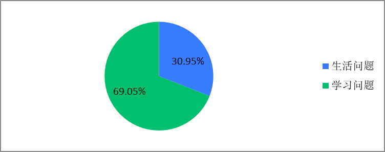 总结:在上一题中选择了焦虑的同学需要回答这个问题,总共126人。其中有39人是因为生活问题,而87人是因为学校问题。由此可以看出:角色不同所要考虑的也不同,大部分同学更多的还是考虑学习问题,对于家长来说更多的是考虑生活问题。有很多同学应该跟我有一样的想法吧,怎么感觉听着听着课就不知道老师在讲什么了;手机放在旁边也会不自觉地拿起来看看qq,刷刷微博;跟老师面对面交流也变得不可能。所以学习效率特别低,又怕挂科,就变得焦虑起来。