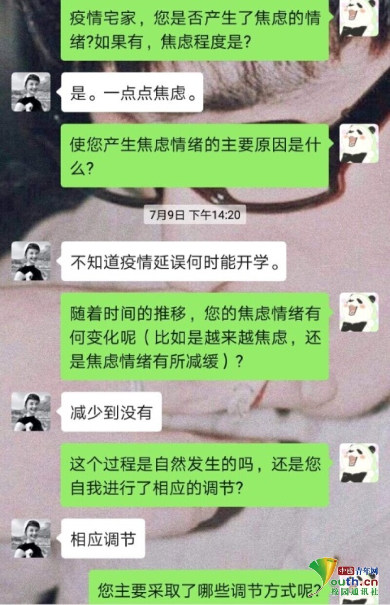 图为疫情期间高校学子的焦虑情况。中国青年网通讯员 王睿 提供