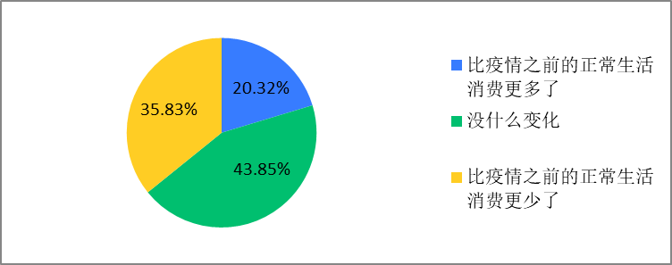 总结:本题中,作答总人数187。选择没什么变化的占比43.85%,说明这部分的同学还是理性消费的。而比疫情之前更少占比35.83%,比疫情之前更多占比20.32%,前者说明能不花钱的时候就尽量节约以备不时之需,后者则是大量的购买食物囤起来,大量的购买口罩之类的。