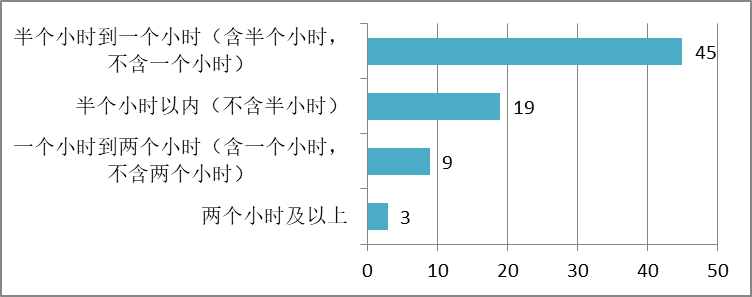 总结:本题是由第二十一题中选择了是的同学来作答的,答题人数76人。其中能够运动半个小时到一个小时(含半个小时,不含一个小时)的有45人,占比59.21%,已经超过了一半。说明大部分同学会运动但是时间相对来说会比较短一点。选择半个小时以内(不含半小时)的有19人,占比25%,这部分同学可能由于场地各方面的原因使得运动时间缩短了。一个小时到两个小时(含一个小时,不含两个小时)有9人,占比11.84%;两个小时及以上的有3人,占比3.95%,说明这部分同学的运动量还是比较大的,锻炼的效果也是比较好的。