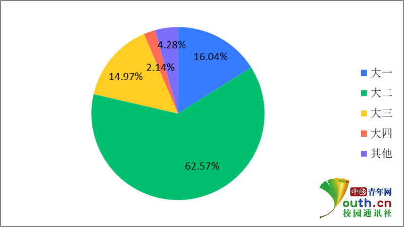 图为本次被调查高校学子年级构成。中国青年网通讯员 王睿 提供