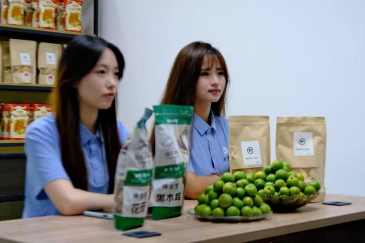 图为 "星光"志愿者服务队队员在开展直播带货。薛琳科 供图