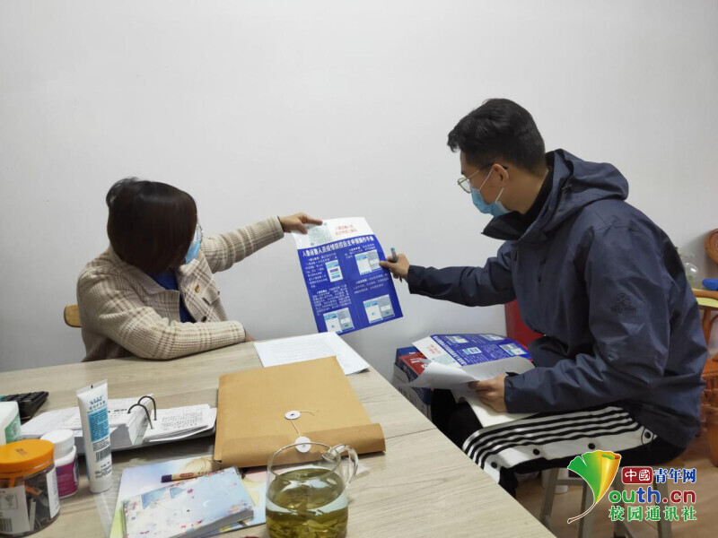 图为河西社区居委会书记向实践队员讲解本社区使用的“入鲁返鲁人员疫情防控自主申报操作手册”。中国青年网通讯员 王福林 供图