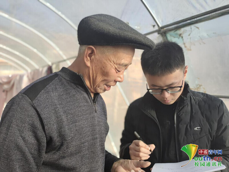 图为实践队员向老人提问对是否有必要使用智能手机的看法。中国青年网通讯员 孙玉娇 供图