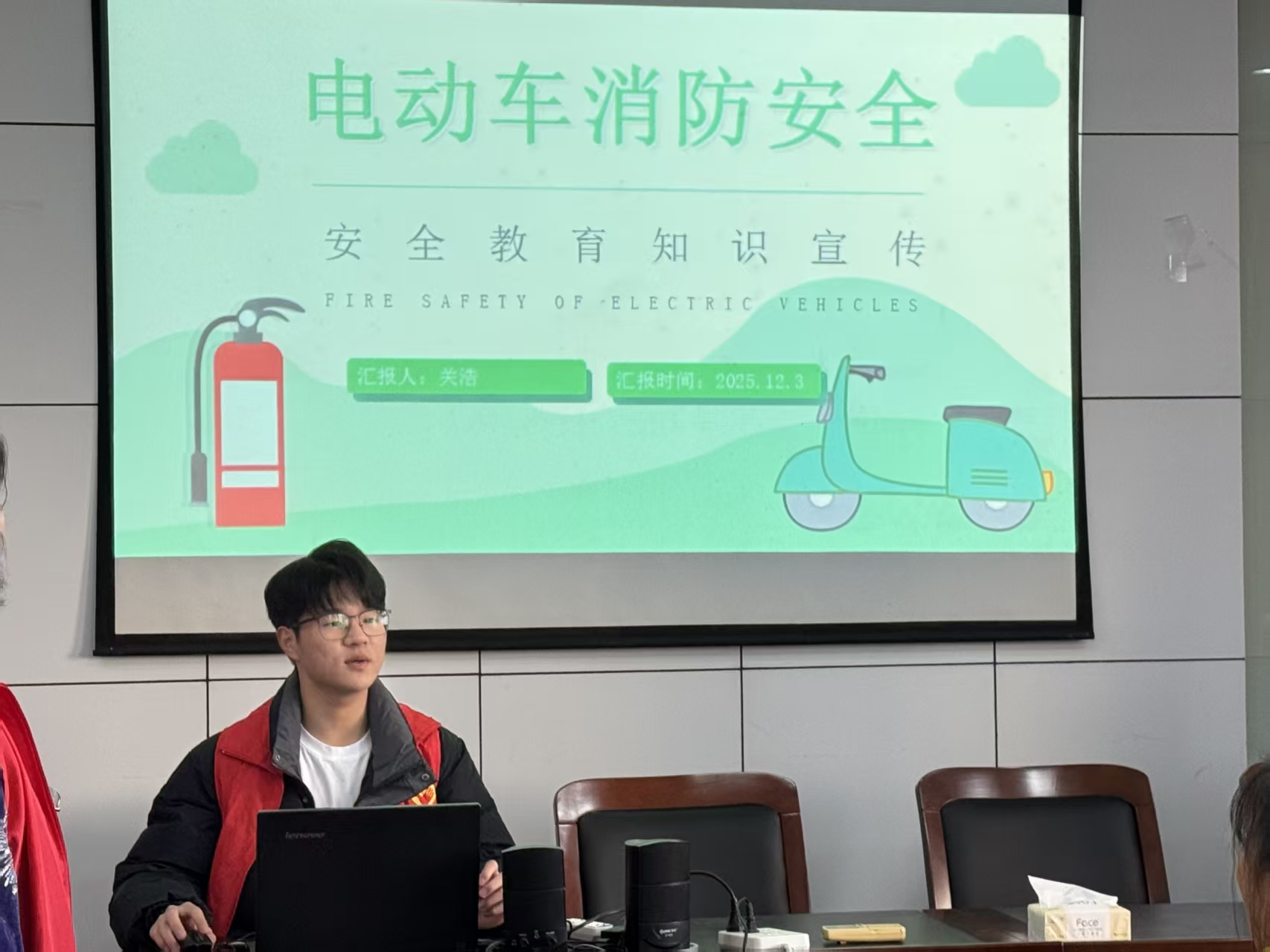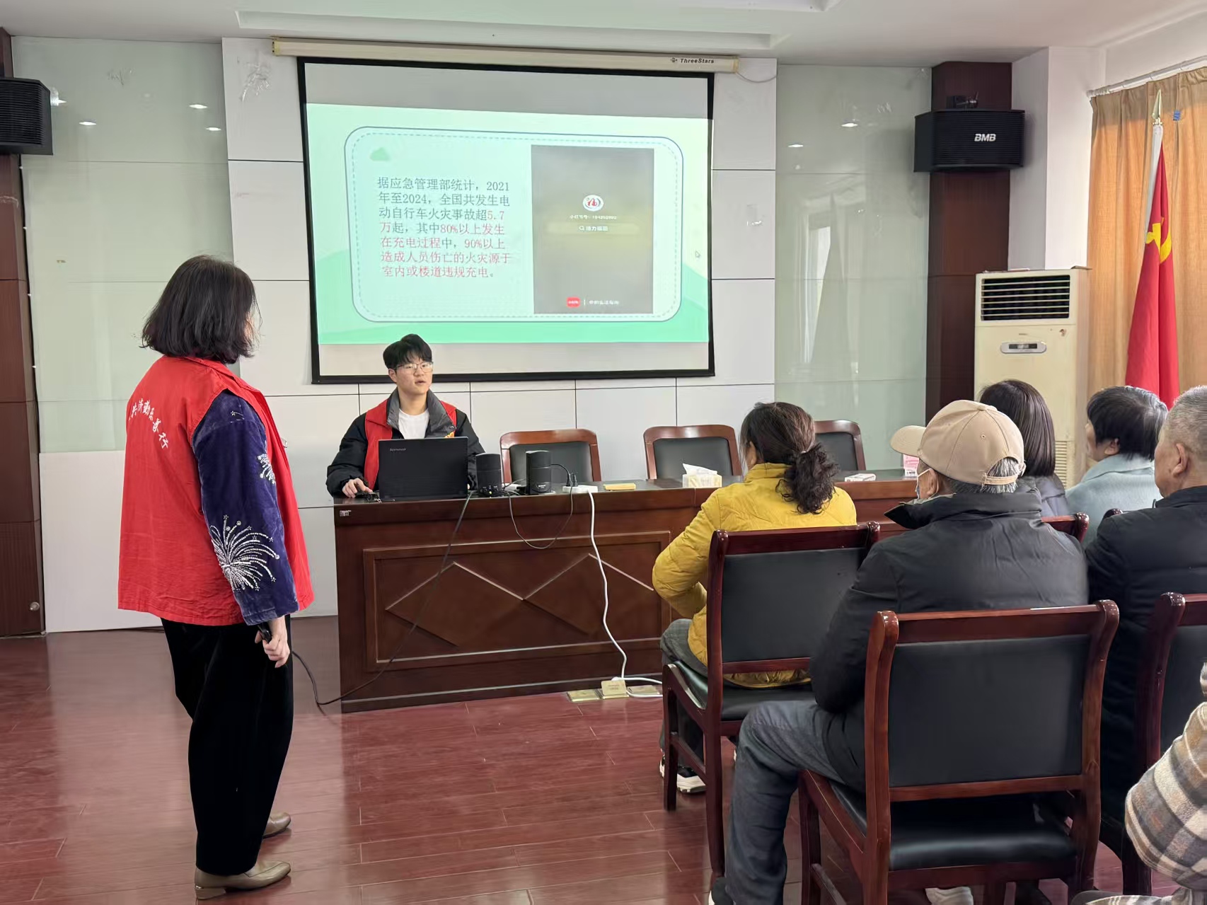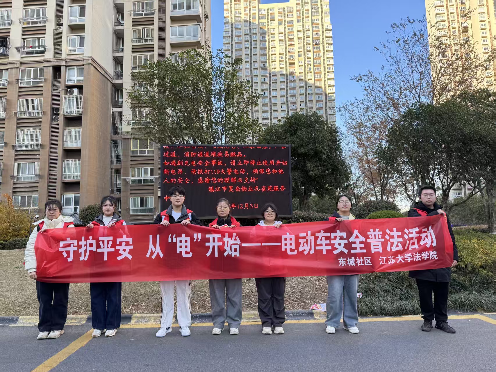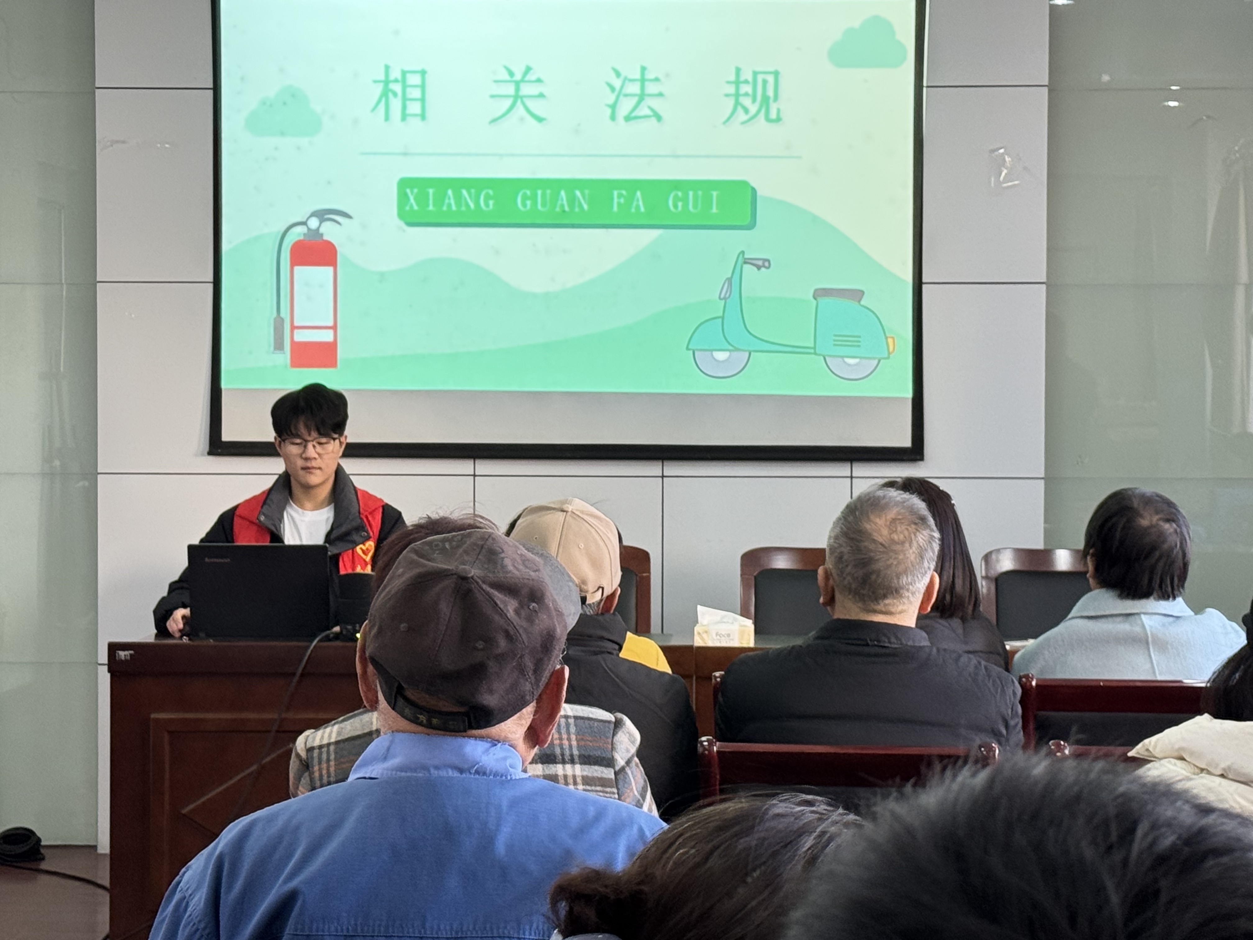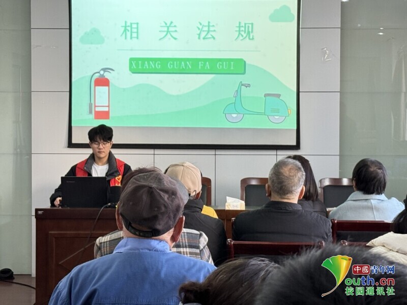 12月3日,江苏大学法学院科创部携手东城社区服务中心,走进江苏省镇江市京口区孔雀苑老年人活动中心,开展以“消防安全进社区,电动车隐患要清零”的电动车消防安全普法活动。