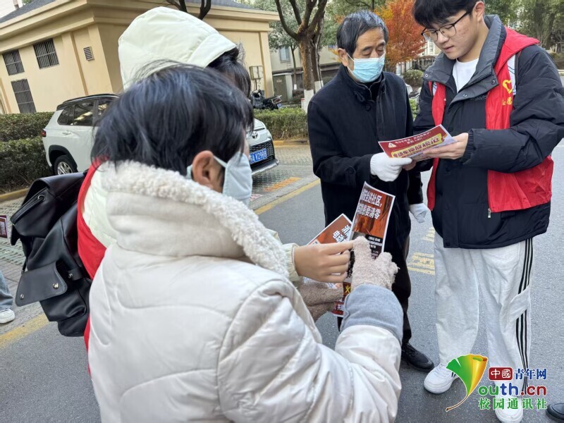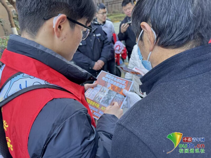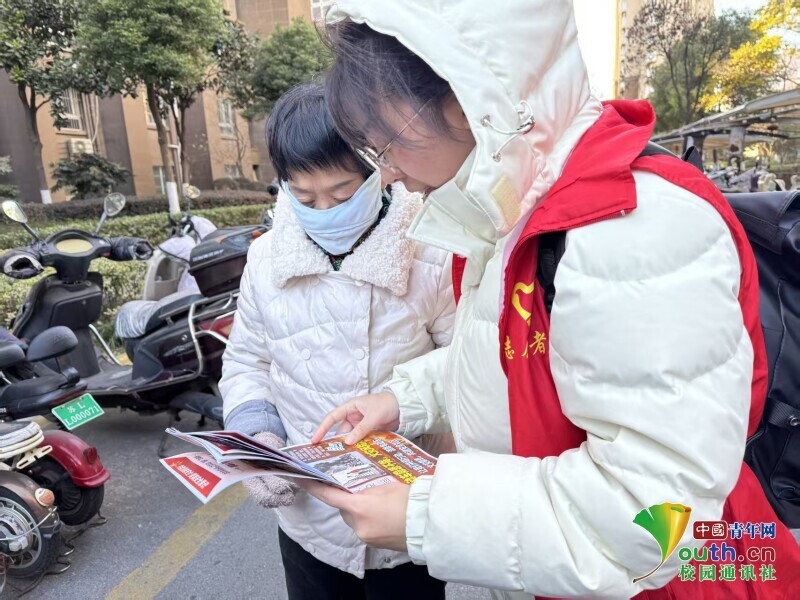 图为志愿者发放宣传册。于涵 供图
