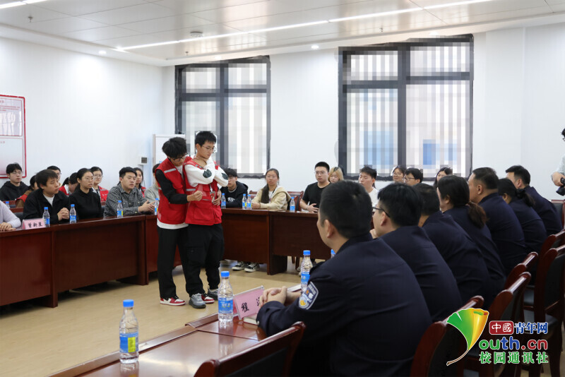 图为师生们为戒毒所民警讲授海姆立克急救法。杨濡汇 供图