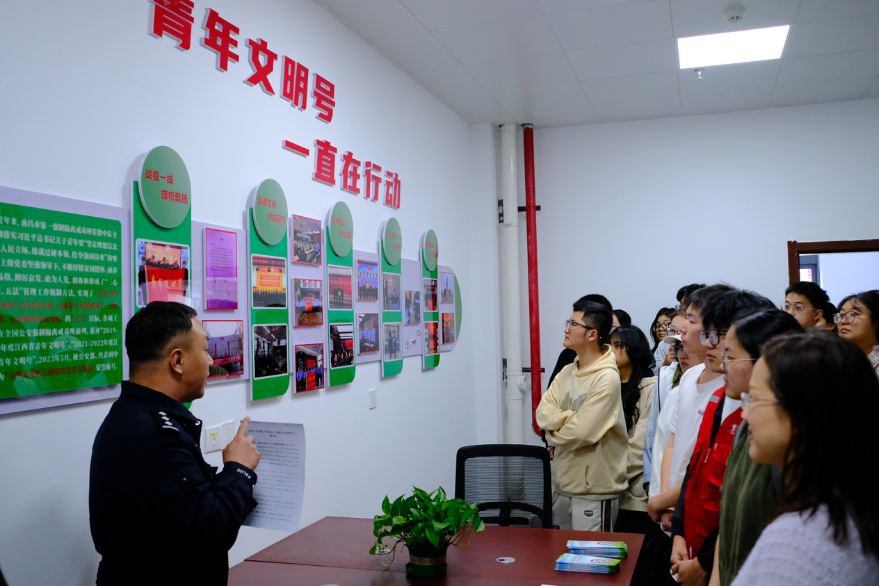 图为戒毒所民警为师生们讲解单位文明建设工作。杨濡汇 供图