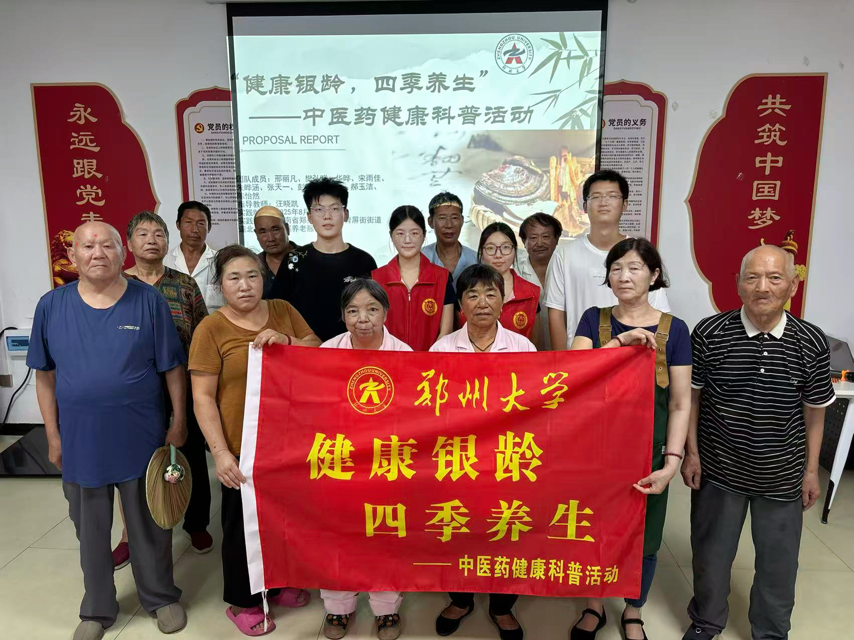 图为郑州大学 “健康银龄,四季养生” 中医药科普活动参与者与实践队成员合影。华晔 供图