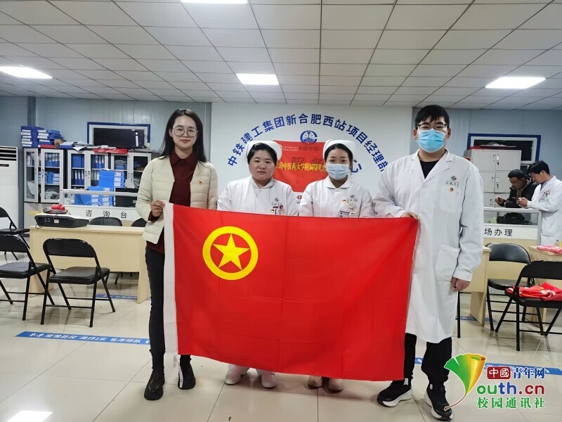 图为上海曙光安徽医院团委与中铁集团新合肥西站经理进行合影留念。梅可 供图