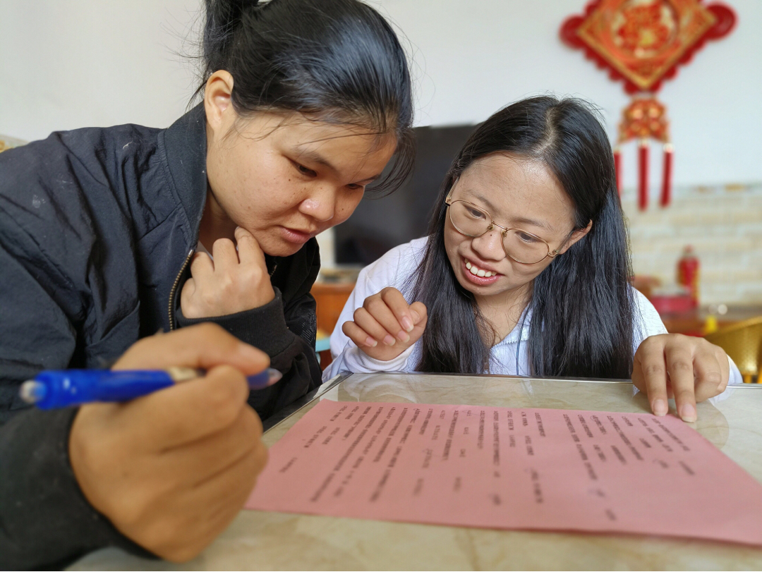 图为实践队队员协助月柿种植户填写调查问卷。中国青年网通讯员 马静柔 供图