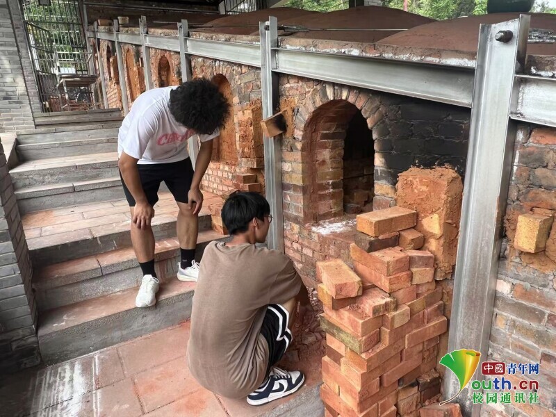 在碗窑村,实践队员们还参观了一处用砖头搭建而成的烧制华宁陶的传统窑洞。这些窑洞由当地匠人手工砌成,通体使用耐火砖和黏土加固,外观朴实无华,却蕴含着烧制陶器的智慧结晶。