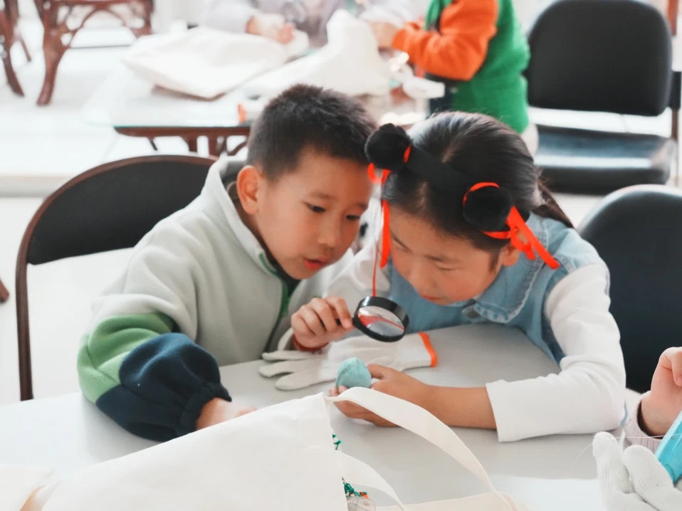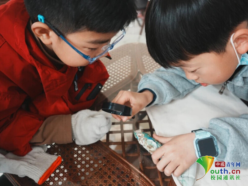 图为同学观察“海洋垃圾”。陈熔 供图